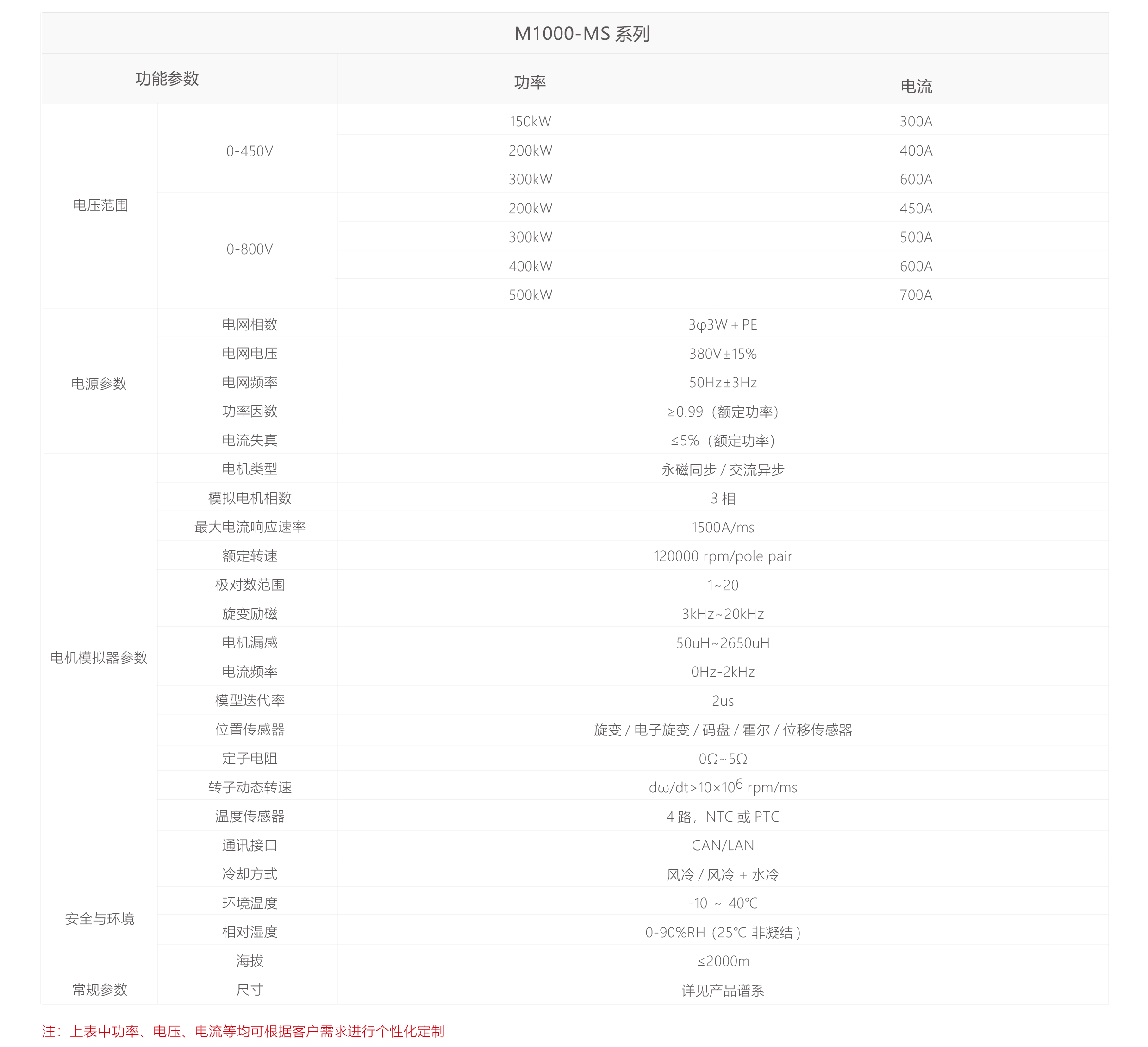 高压:800V(L-L)