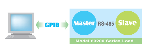 当负载功率需求增加时,chroma 63200系列具有智慧型主/从控制模式,可透过主/从控制的并联方式达到所需的电流及功 率。当设定成主/从控制模式时,使用者仅需在主机上编程负载电流,主机经过自动计算后会将电流分配至其他 从机,如此可大大简化使用者的操作步骤。简言之,使用者在并联63200系列时,仅需将所有设定成主/从控制的 电子负载,当成一负载即可。同电压规格但不同型号的63200系列皆可并联在一起,多可高达六台同时并联。