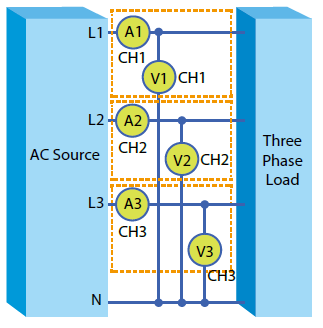 同时,也可使用3P3W三相三线式所支援的两瓦特计量测方式对于三相交流电源待测物进行功率量测,例如:电源供应器功率量测应用。以及使用内建功率效能计算功能计算出电源供应器的整体效能。