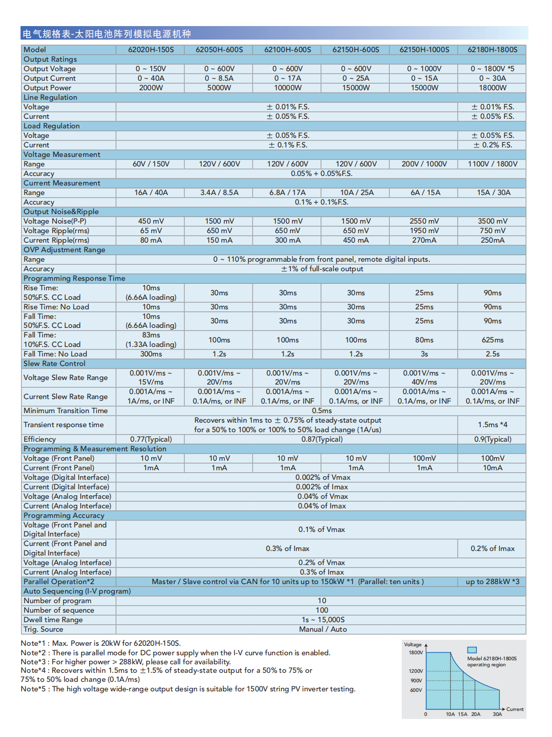名  称:可程控直流电源供应器(太阳电池阵列模拟功能)MODEL62000H-S系列