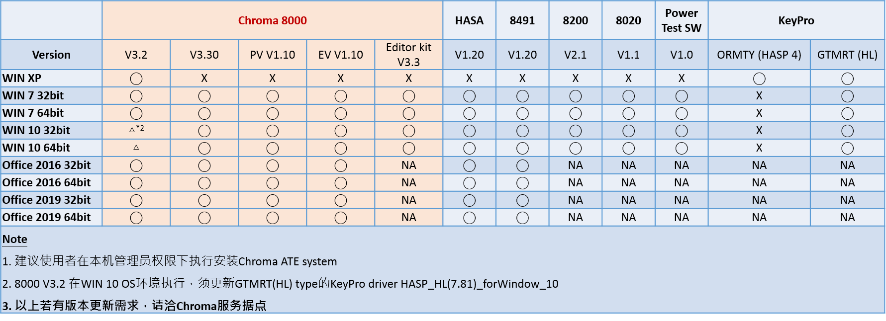 电源自动测试系统软件版本与Windows版本对照表