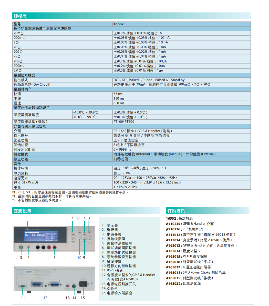 名  称:毫欧姆表 MODEL 16502